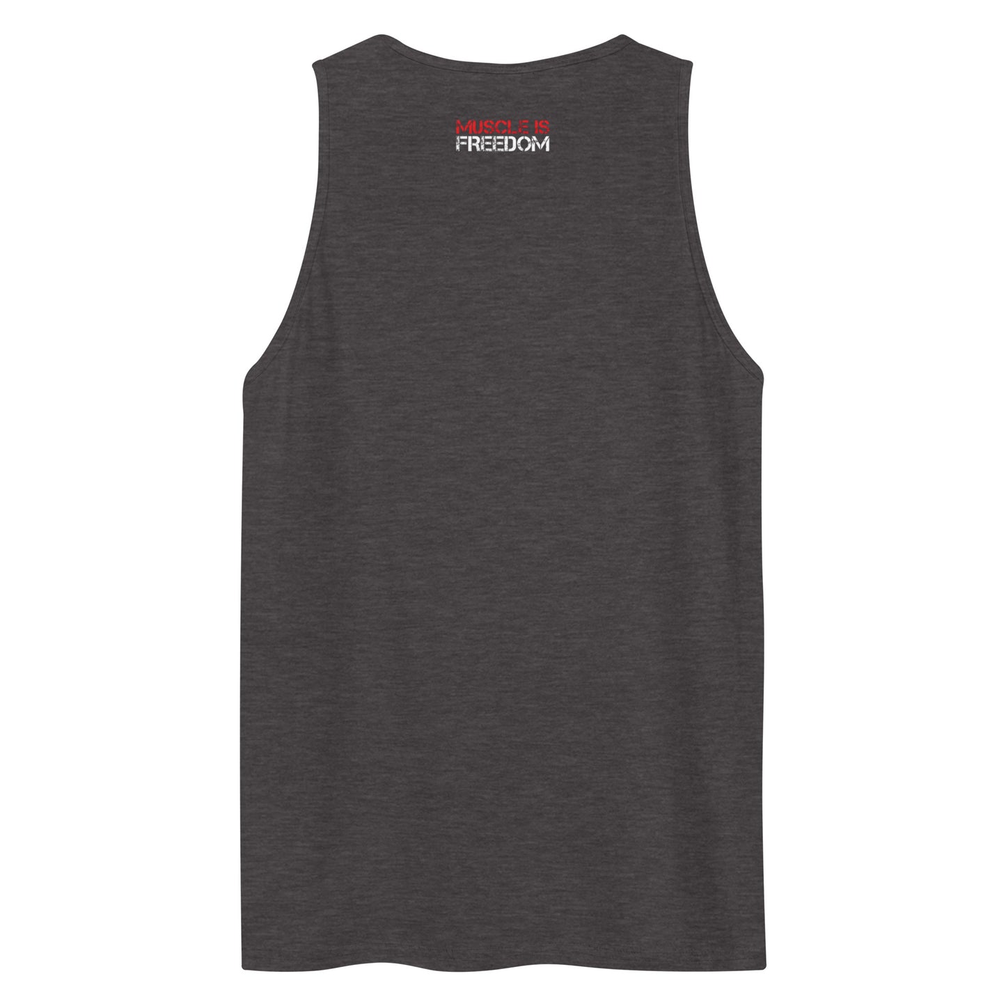✔ Back Collar Print: “Muscle is Freedom” – Because it is.