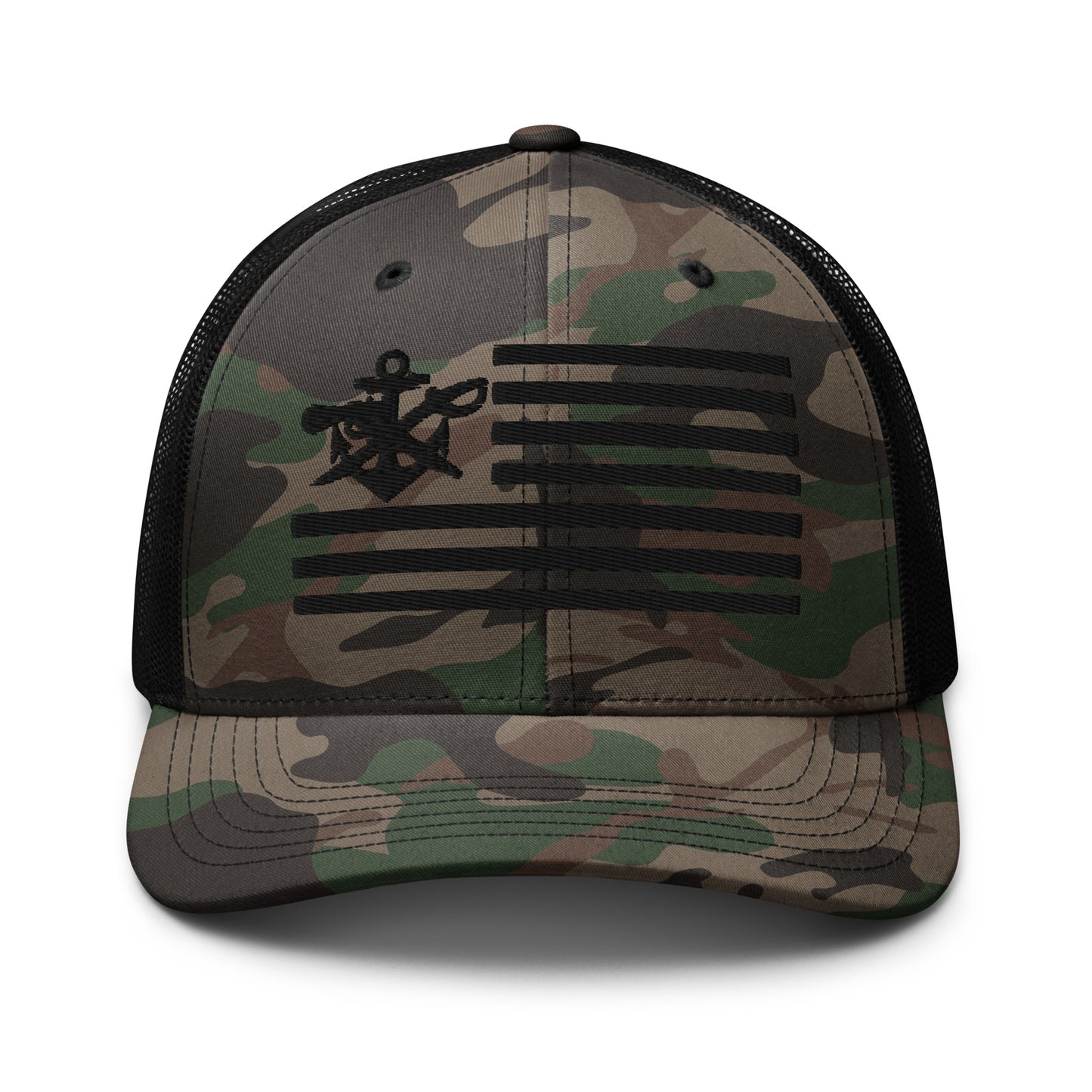 The SWCC Nation Flag Trucker replaces the 50 stars with the SWCC warfare insignia, stitched directly into the flag that defines the grit, brotherhood, and blood that built this country. It's for those who served in silence, fought in the shadows, and brought mayhem to the water.